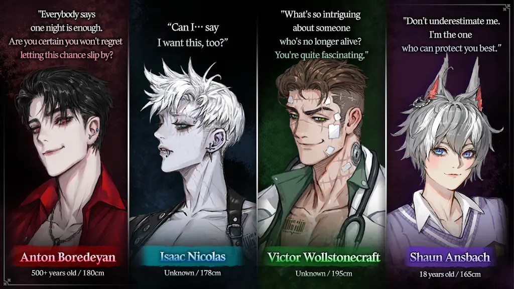 1、邂逅吸血鬼、狼人、亡灵和古代医生等魅力男性角色。