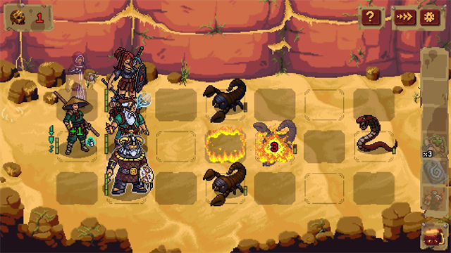 四人小队固定前排 3 人作战、后排 1 人回血,每次攻击前必须交换任意两名英雄位置,前排英雄会集体发动攻击,换位是触发攻击的核心操作。