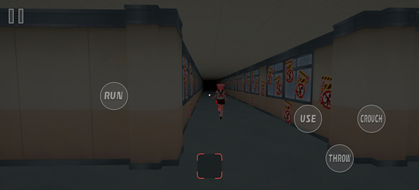 操作:虚拟摇杆移动,左侧 Run 加速、右侧 Use 互动 / Throw 投掷 / Crouch 下蹲,可利用桌椅、衣柜躲藏,投掷物品引开 Netsure 注意力。
