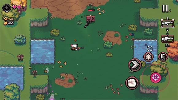 萌系暴力反差:可爱像素蝾螈配硬核枪械,敌人含机甲猫咪、加特林毛熊等,Boss 战趣味与挑战兼具。