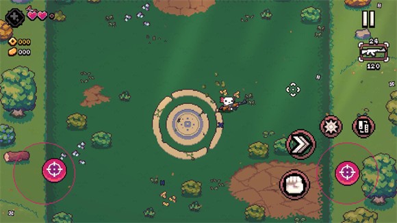 1、操控:左摇杆移动,右摇杆射击 + 冲刺 + 技能,无限制翻滚规避弹幕,长按治疗技能回血。
