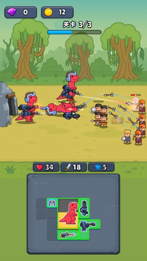 2、当你搭配了红色的恐龙、弓弩等这些元素之后,即可让恐龙战士使用相关的武器攻击敌人。