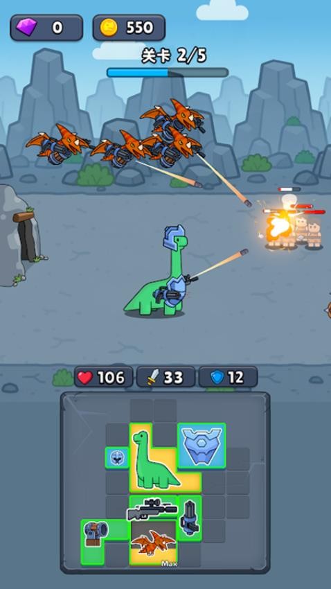为威猛恐龙配备现代武器,对抗它们的生存大敌 —— 人类!在网格上布置恐龙与装备,组建无坚不摧的军团,之后就能悠闲观战自动激战。解锁 3 种独特恐龙,尝试多样战术搭配,搭配简约精美画风与炸裂特效。终结灭绝危机,让战场真霸主降临!