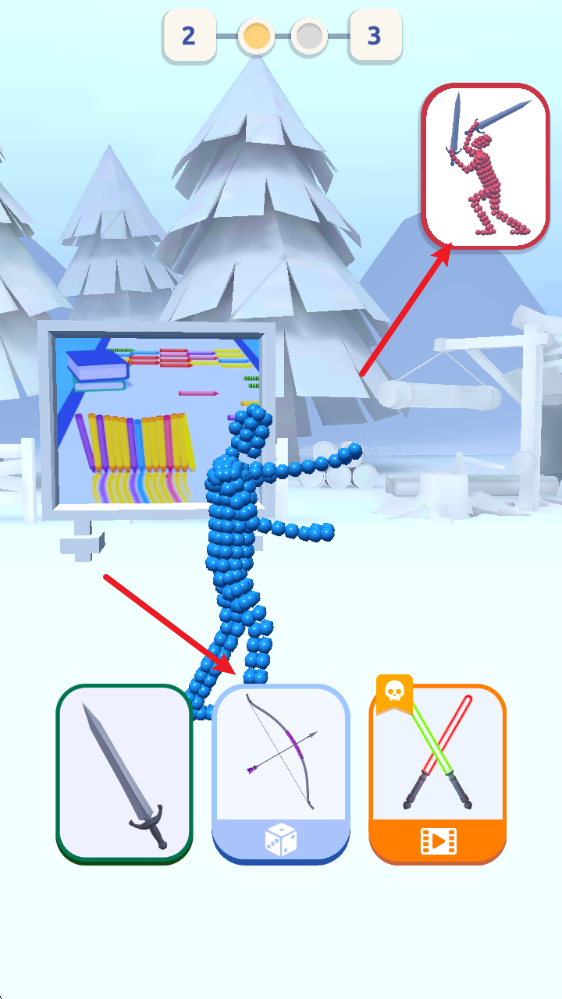 3、你是想用剑或长矛武装自己,还是准备徒手搏斗?选择权在你手中,战士!勇往直前,边战边升级你的武器。