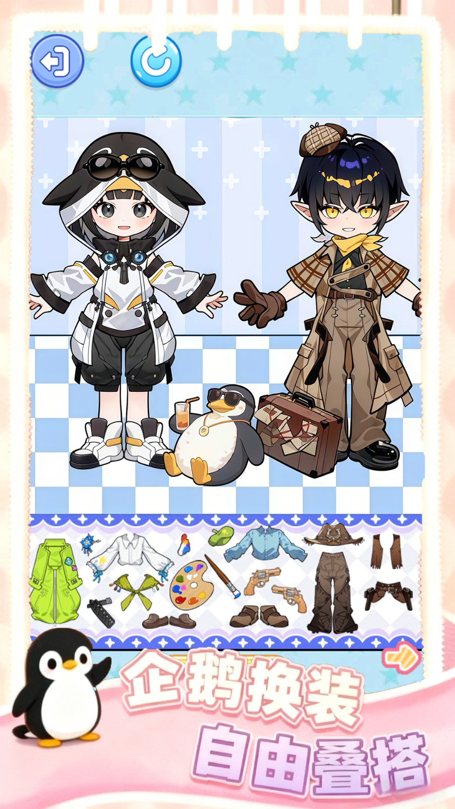 3.以“贴纸+自由创作”为核心,通过丰富的服饰素材库、无拘束的搭配逻辑,为玩家提供低压力、高自由度的角色设计体验。