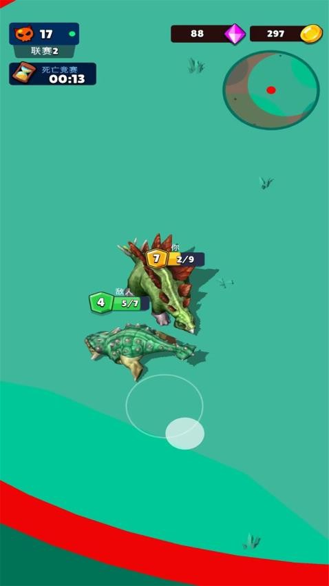 3、从弱小恐龙开始成长,通过捕猎的方式慢慢增强各方面能力,随着成长深入还能解锁全新技能尝试战斗。
