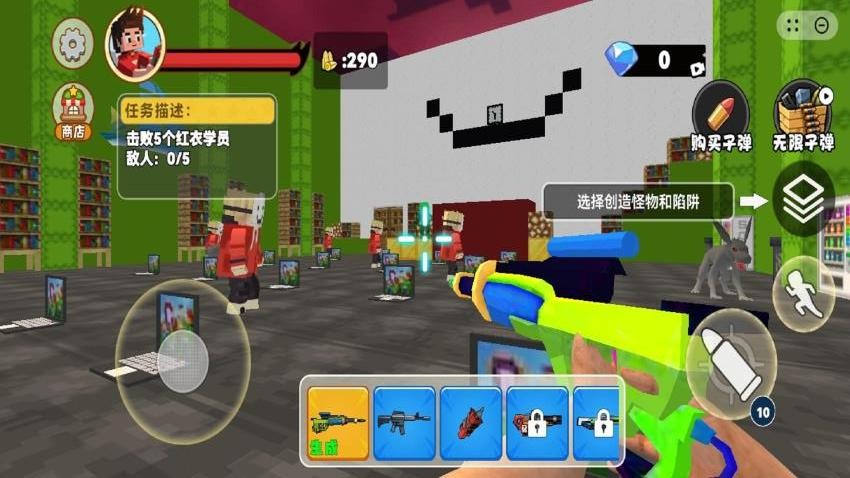 1、商店系统直接购买物品道具,武器装备也能前往商店兑换获取,这会带来极其独特的作战效果,趣味十足。