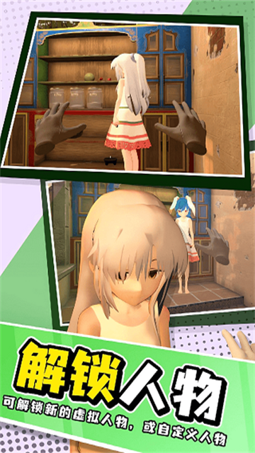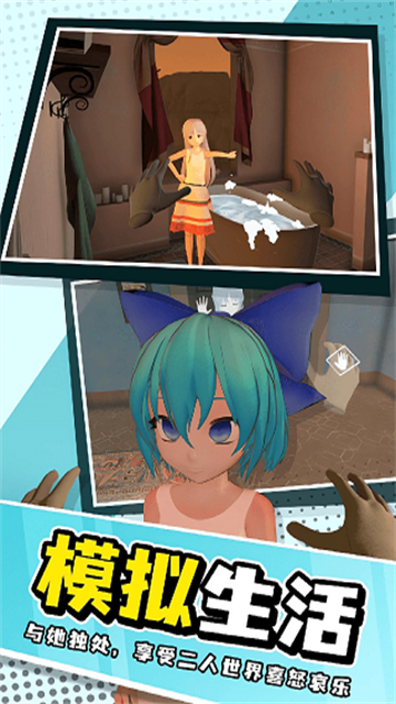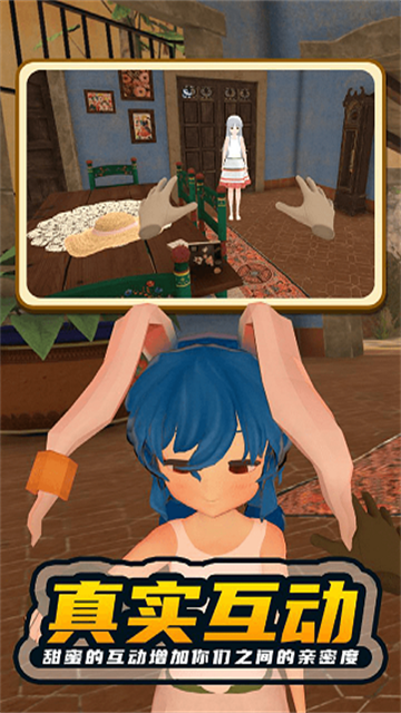 1、以第一视角控制角色移动与手部动作(递物品、互动、召唤跟随),通过对话、投喂、洗头、泡温泉等行为提升好感度与情绪值,解锁专属剧情、语音与动作。