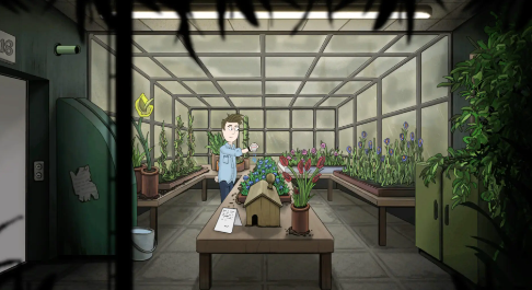 1、游戏全景透明办公室却布满信息死角,视觉通透与信息闭塞形成张力。