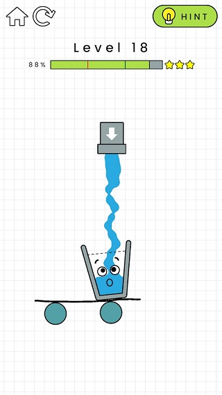 画线导水:在屏幕任意区域绘制线条,利用重力与物理引擎引导水流避开障碍、精准入杯,达到目标水量即可通关Happy Glass。