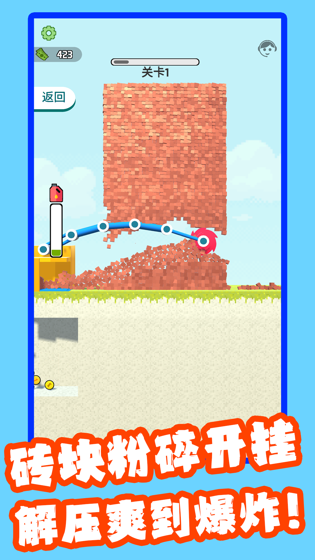 3、环境互动:切割产生的碎块会实时影响场景,坠落的砖石可能触发连锁反应,需巧妙利用环境要素完成复杂解构。