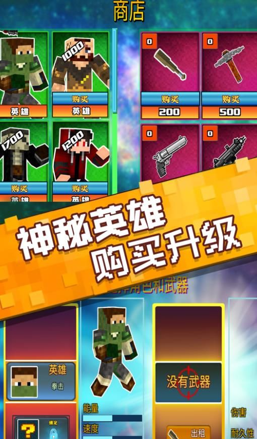 2、通过通关奖励获取金币,用于购买新英雄或升级现有角色的属性与武器。