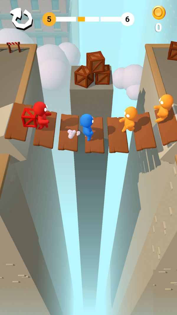 1、操控角色在屋顶移动,通过推、撞、抓取等动作将敌人扔下平台,躲避其他玩家攻击。