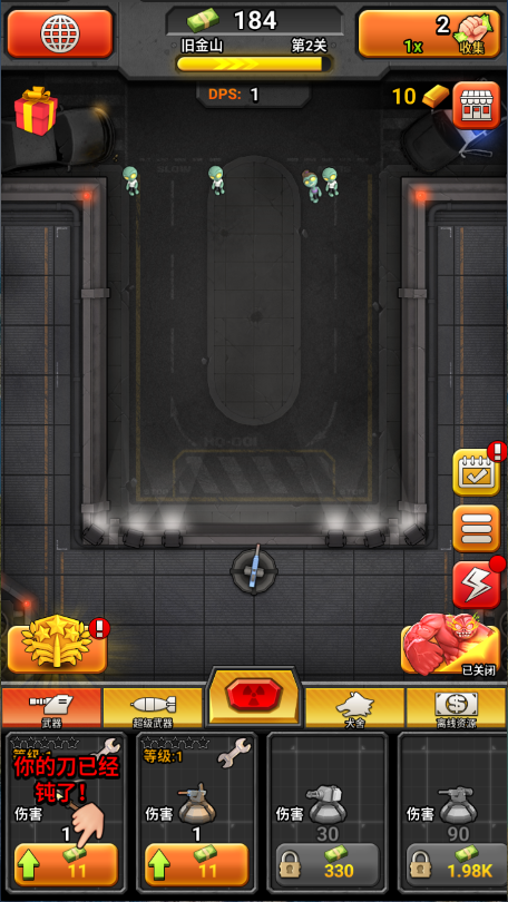 进入游戏,点击僵尸可以快速的砍杀僵尸。