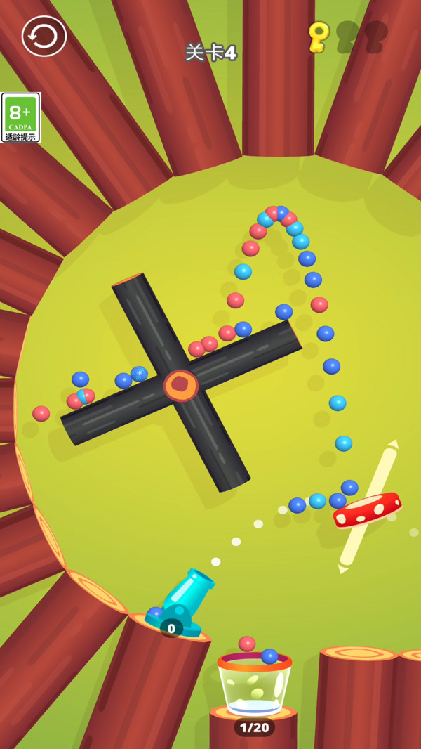 2、每成功装满桶完成一关,就能解锁一种新的大炮,新大炮会射出不同数量或特性的弹珠,增加玩法和挑战。