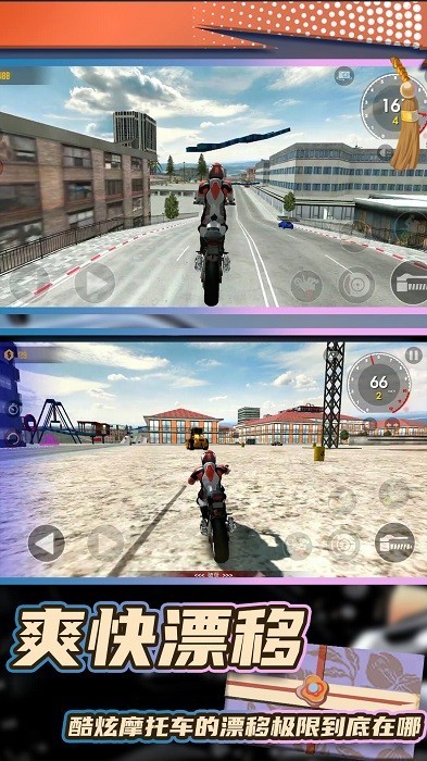 多种摩托车车型和丰富的赛道选择,增加了游戏的可玩性。