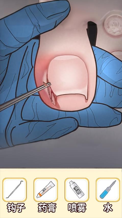3、滑动底部的工具,可以找到钩子、药膏、喷雾、水等物品,正确使用不同的物品清洁口腔