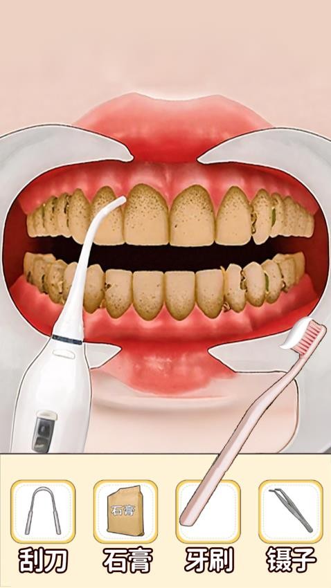 支持镊子,支持电钻,支持吸管,支持钩子,正确选择道具就可以清理口腔全部残留。