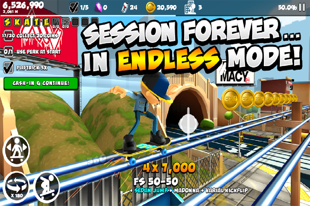 新增坡道技巧(酸滴、脊椎转体),配合助推器冲击高分,技巧等级提升可加分数倍率。
