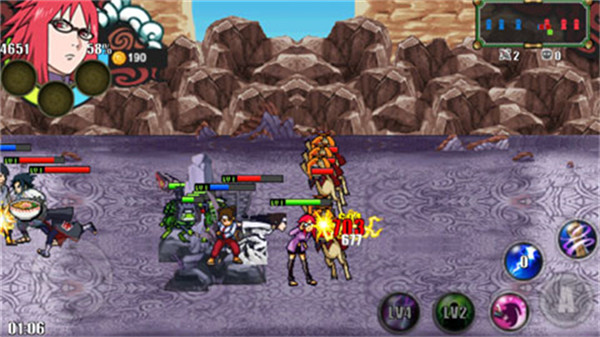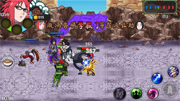 通过累计对战解锁新角色,升级提升属性,搭配忍具与天赋强化战力。