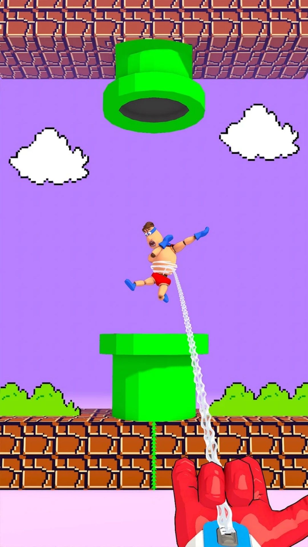 1、在关卡中滑动屏幕瞄准英雄,投掷蛛丝黏住目标后拖动拉扯,直至其撞击场景物件粉碎。