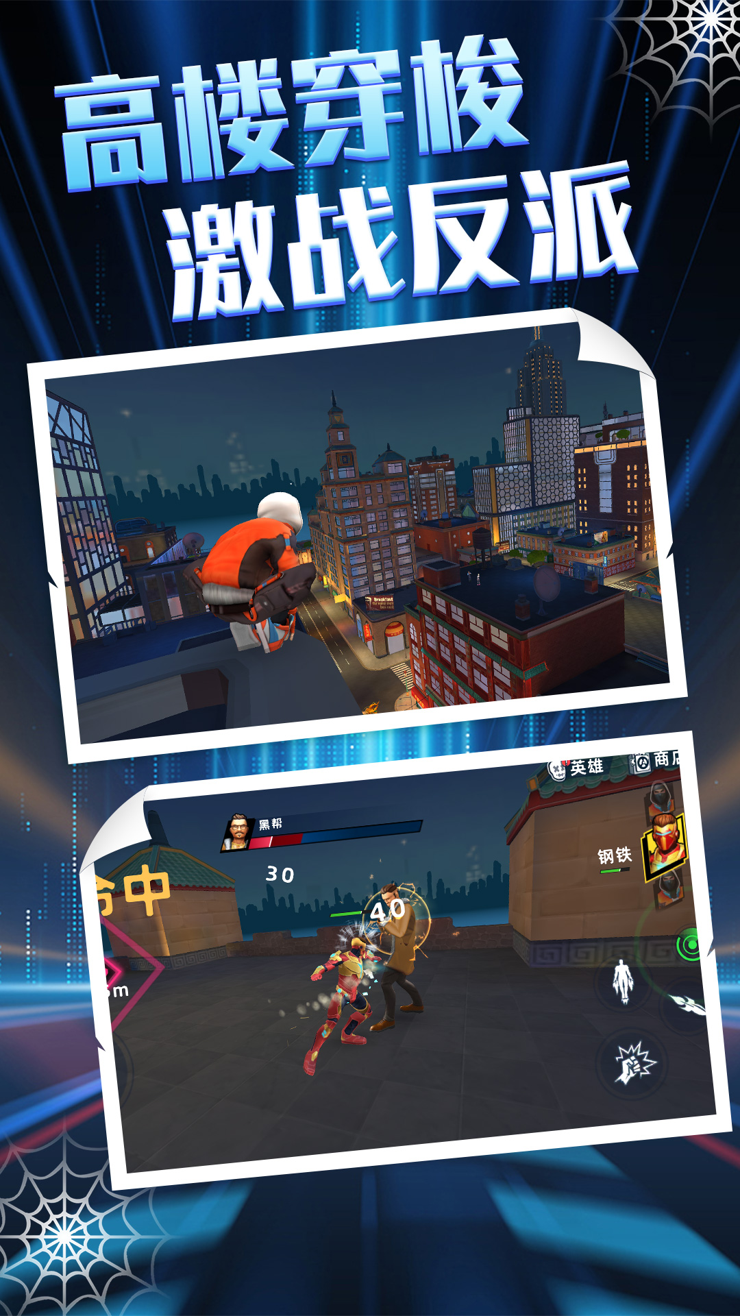 1、还原蜘蛛侠标志性的移动方式,摆荡与爬墙操作流畅,带来真实的城市穿梭体验。