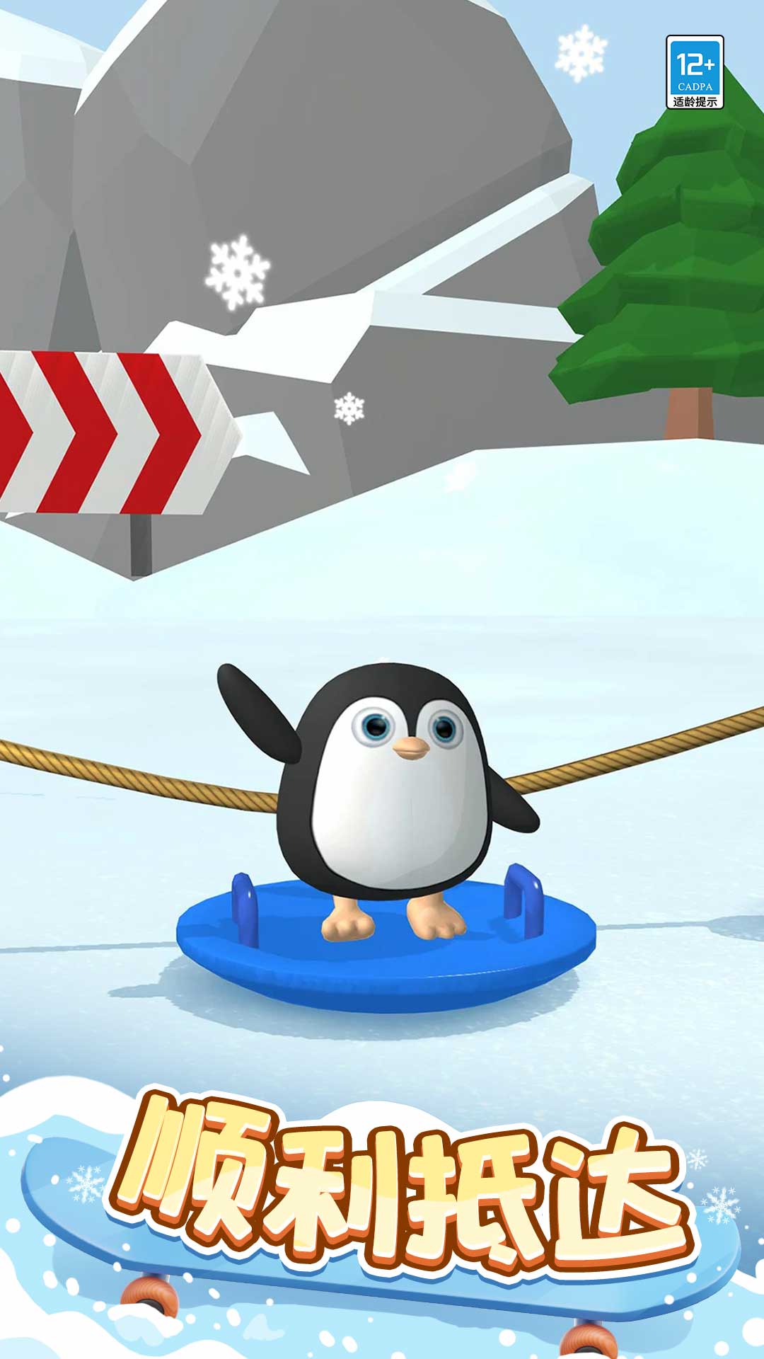 1、通过手指左右滑动屏幕,灵活控制卡通角色在蜿蜒的雪道上移动以避开障碍物。
