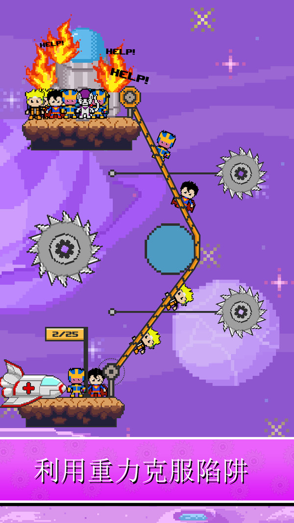 1.游戏简单却显示出你极高的智商,营救绳索两端之间的超级英雄并克服危险的障碍。