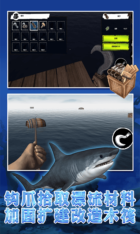1、经典的木筏求生游戏,高清精巧画面登陆手机。