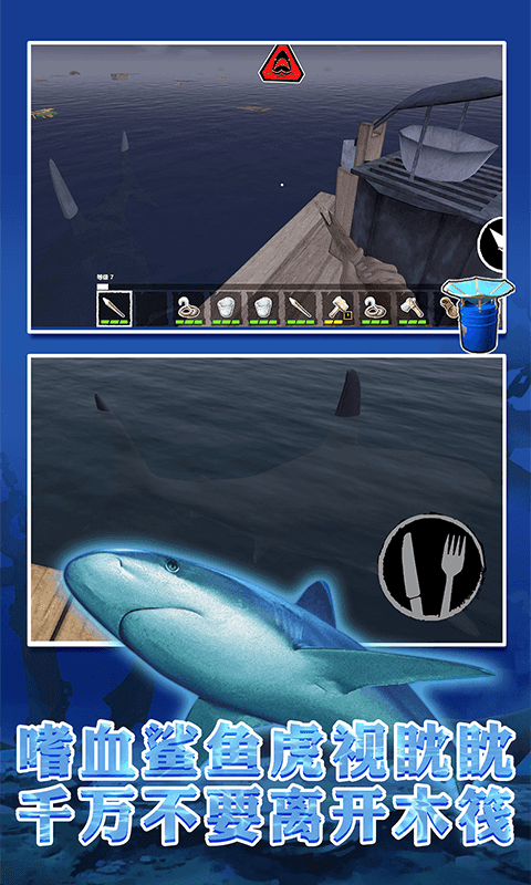 3、噬血大白鲨对玩家志在必得,千万分别开木筏。