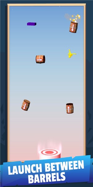 1.每次点级屏幕之后,任务就会冲向箭头指向的位置,到达新的桶旁边时。