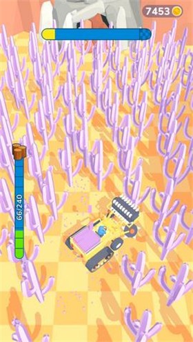 2,你可以用强力的破碎机压碎很多树,把他们炸成碎片,得到木材,卖了就发财了,升级你的拖拉机,变得更加强大,轻松砍伐更多的树木。