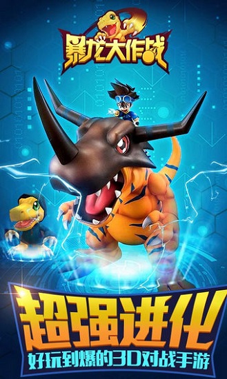 【暴龙大作战】根据经典动画《数码宝贝》制作的一款3D对战类手游。游戏采用3D引擎对数码兽百分百还原,亚古兽、加布兽等主角数码兽都会一一登场。每个数码兽都拥有完整的进化路线,最终可以进化成究极体。暴龙大作战游戏内容丰富,除了战斗部分,还有各种情节模式,带玩家重温经典剧情。