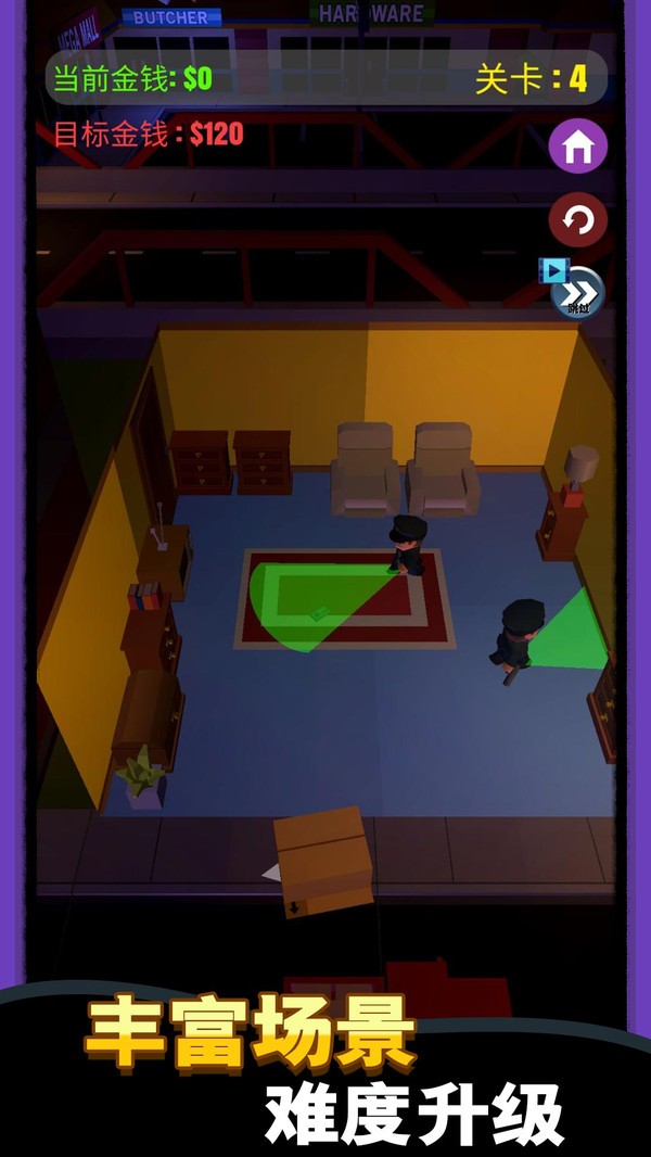 3.躲避警察的追击,完美避开各种陷阱和障碍物,灵活行走。