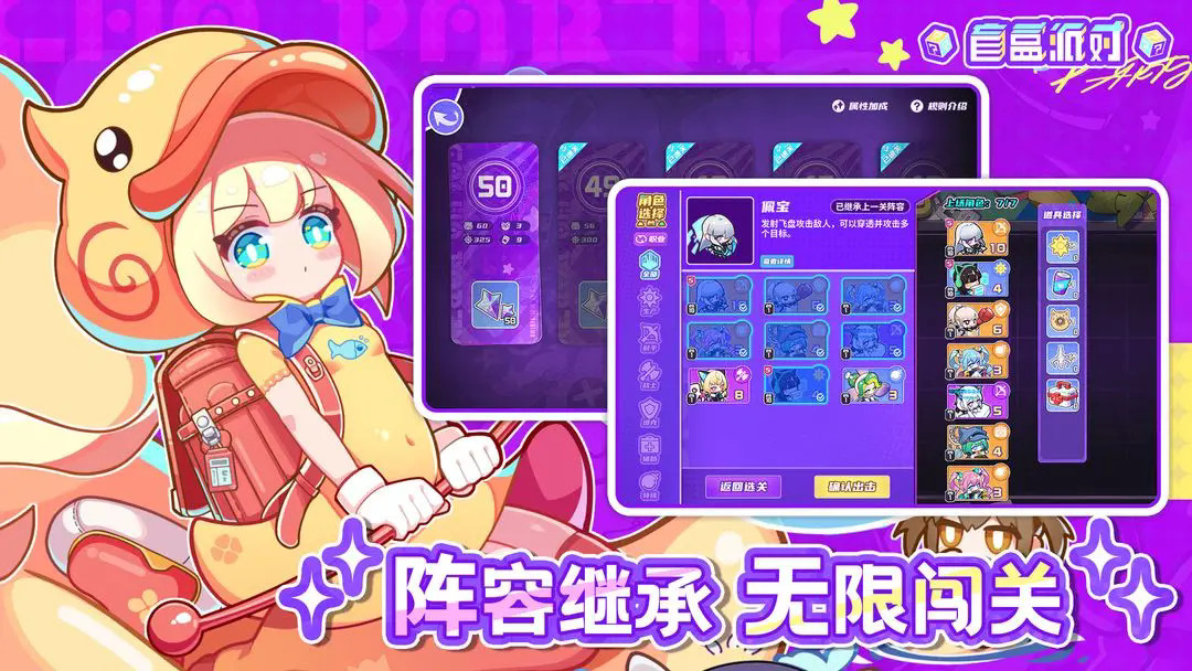 盲盒派对是具有趣味性的一个经典动作闯关游戏,在游戏里拥有很多丰富的关卡模式,各种精彩的剧情故事等着你去解锁,还有很多可爱又厉害的角色等着你去招募培养,适合各个年龄段的人来玩的游戏,随时随地就能来体验了,还等什么呢,有兴趣的赶紧来下载吧!