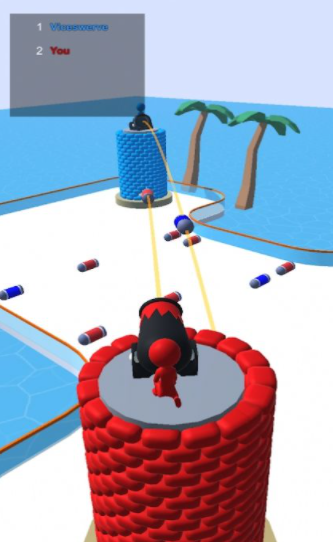 3.捡一定数量的子弹,就可以走进自己颜色的塔,瞄准目标自动射击。